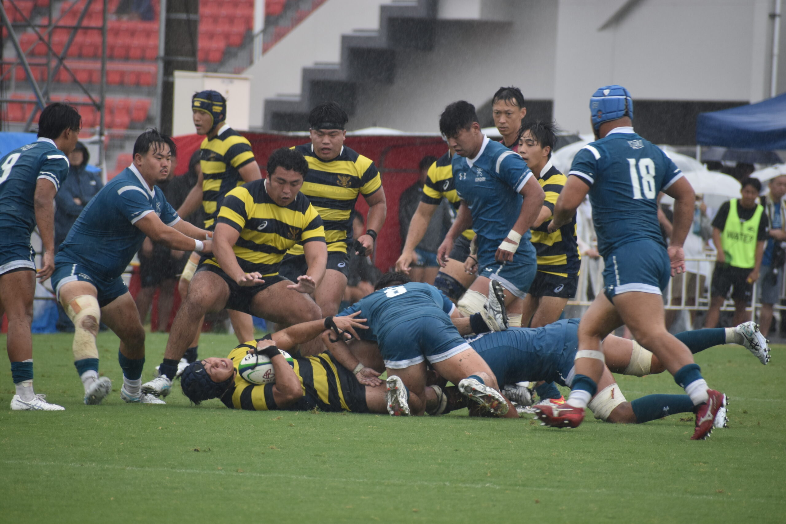 どうにか立て直し、点差を縮めたい立命館ですが、 土砂降りの雨も相まって苦しい時間が続きます。