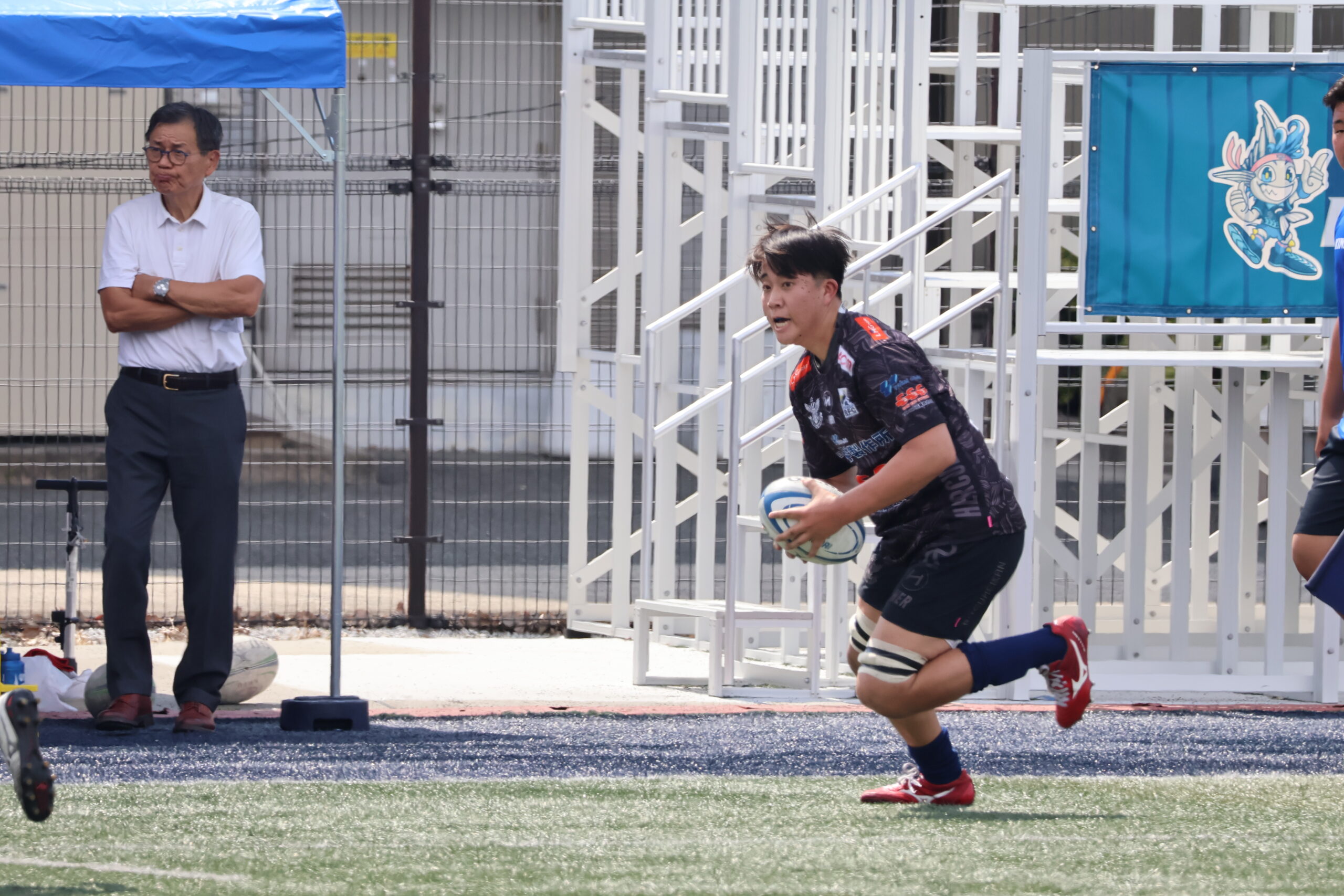 前半25分には、7梁瀬が抜け出し、24柳澤へ繋ぐと、もう一度折り返しで7梁瀬がパスを受けてトライ。