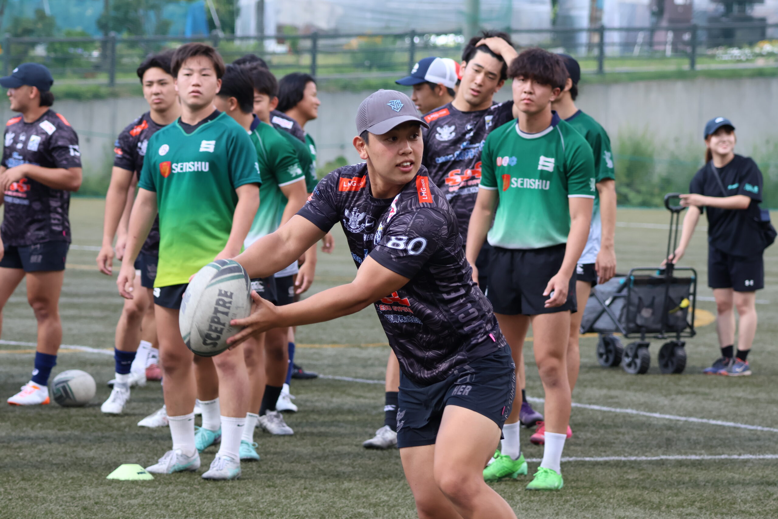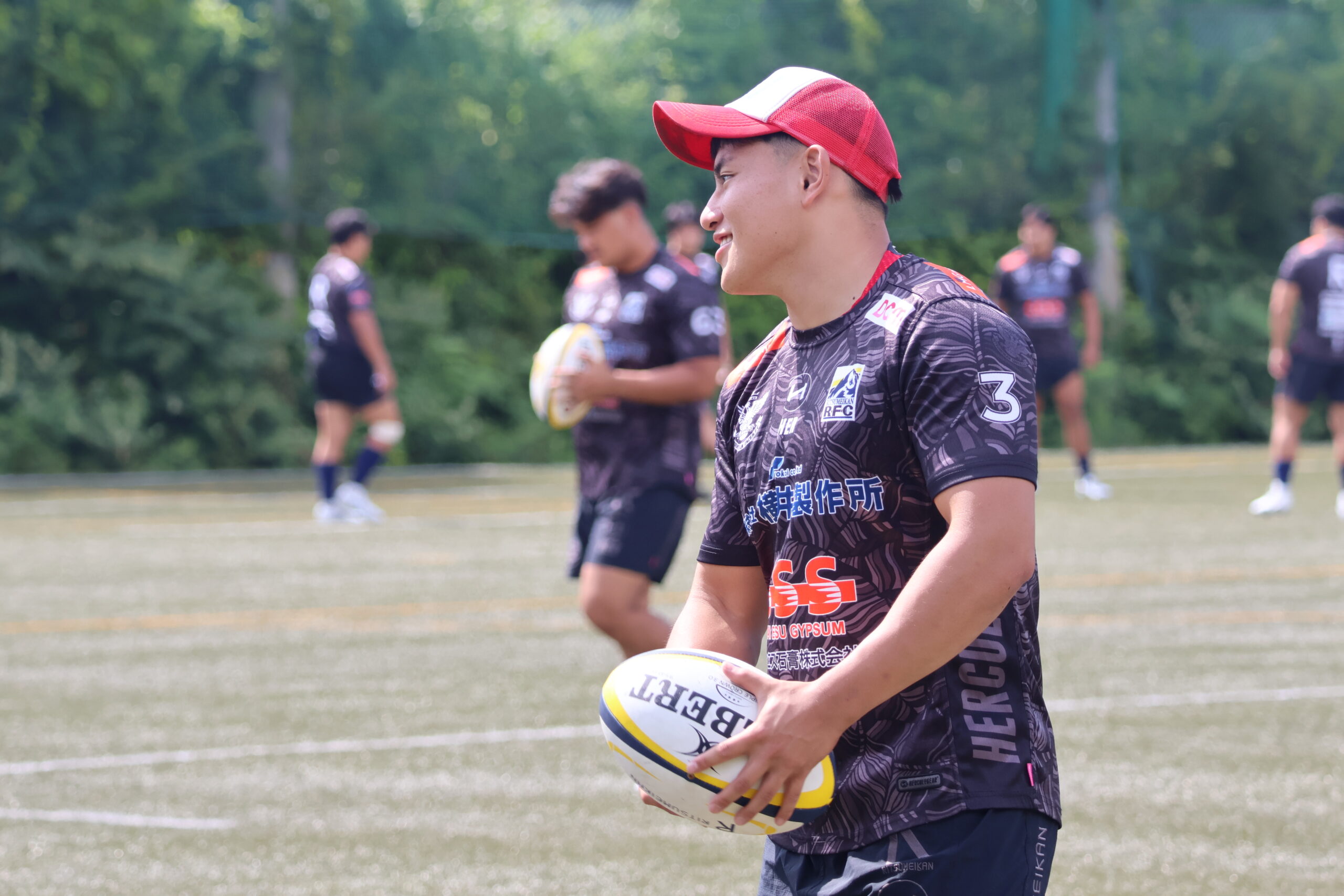 14時過ぎにスタートしたため日差しが厳しい時間帯でしたが、涼しい風が吹いており、ラグビーをするのにとても適していました!今回の合同練習はFWとBKに分かれて行われました。