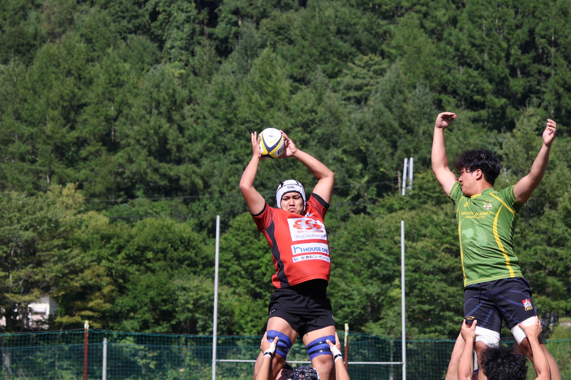 ラインアウトモールの練習では、コートの両サイドを使い、外国人選手を含む高身長の多い大東文化大学相手に強度の強いぶつかり合いを行いました。