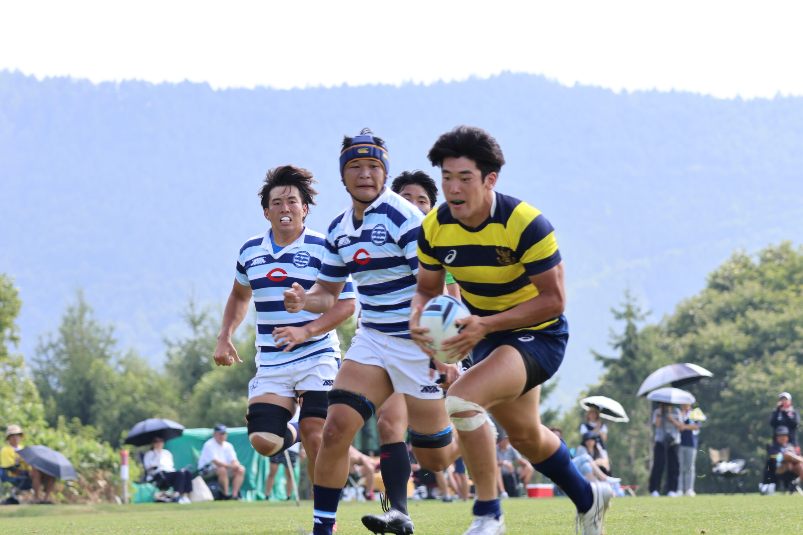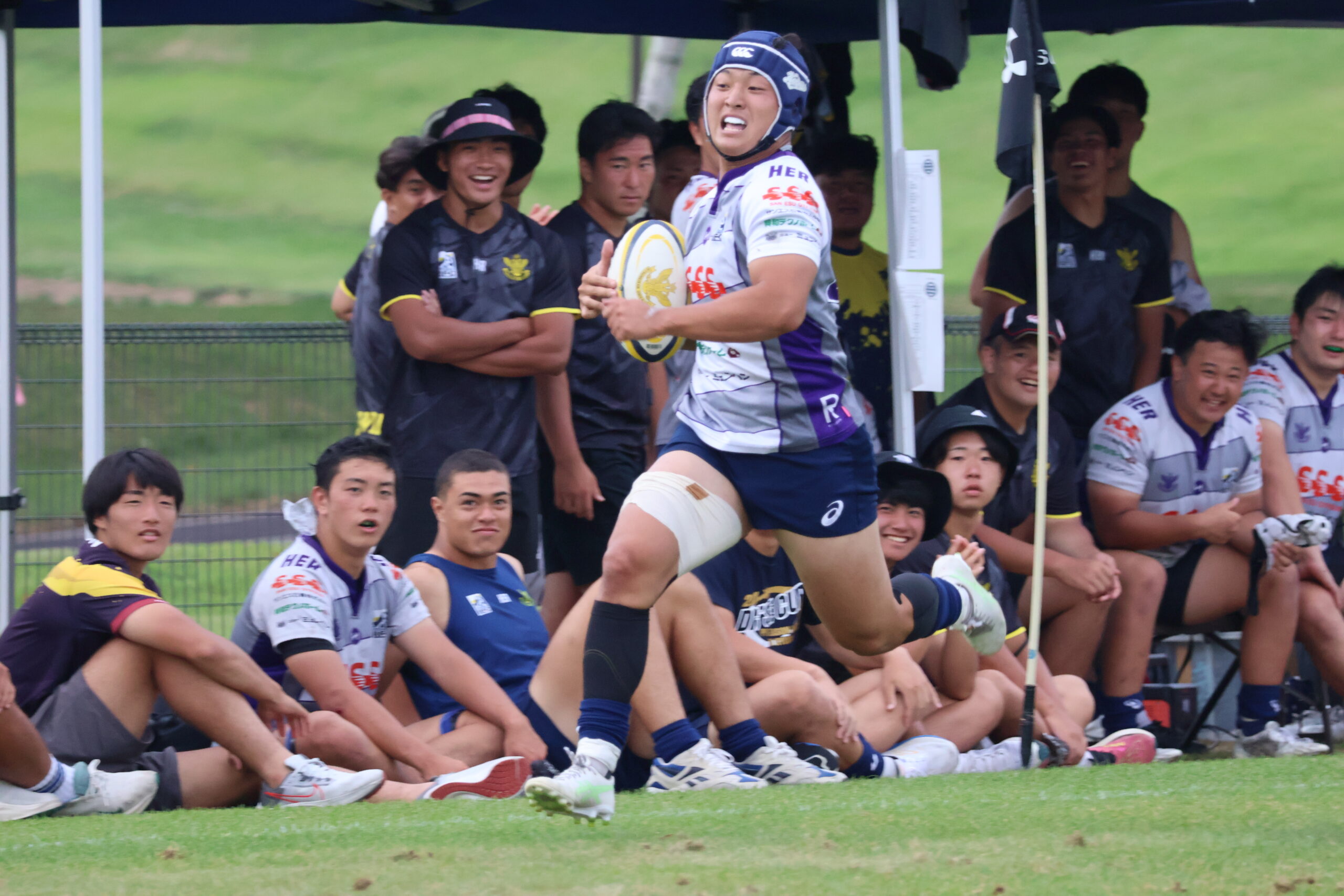 後半30分、自陣でピンチを迎えますが、相手のこぼれ球を拾い、26川部颯が右サイドを走りぬきトライ!