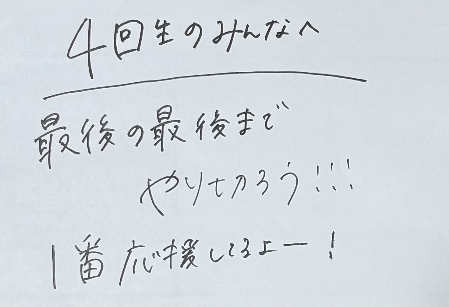 白紙に応援メッセージを書く。