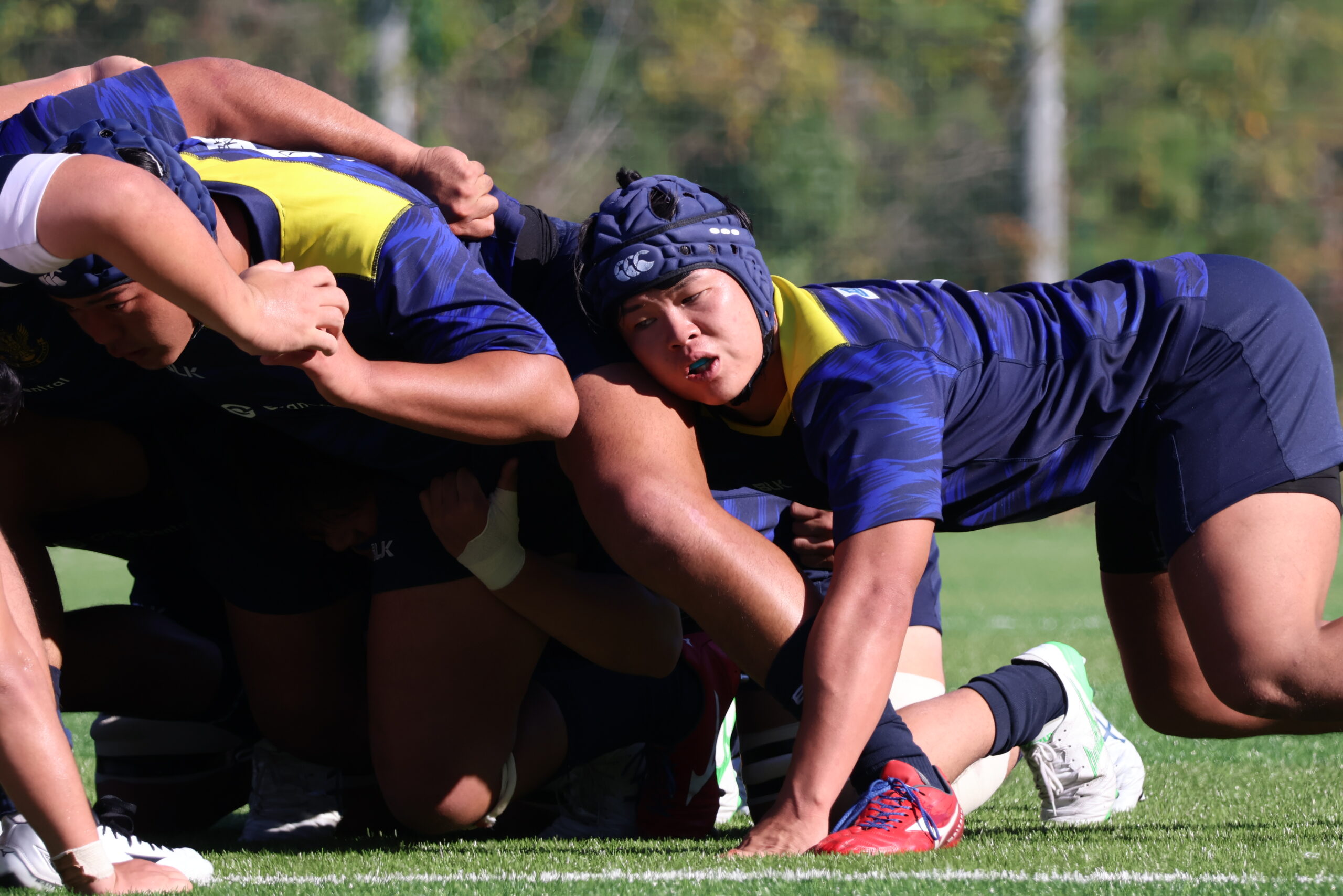 敵陣左ゴール前ラインアウトモールから力強く押し込み、2 西野がトライ!