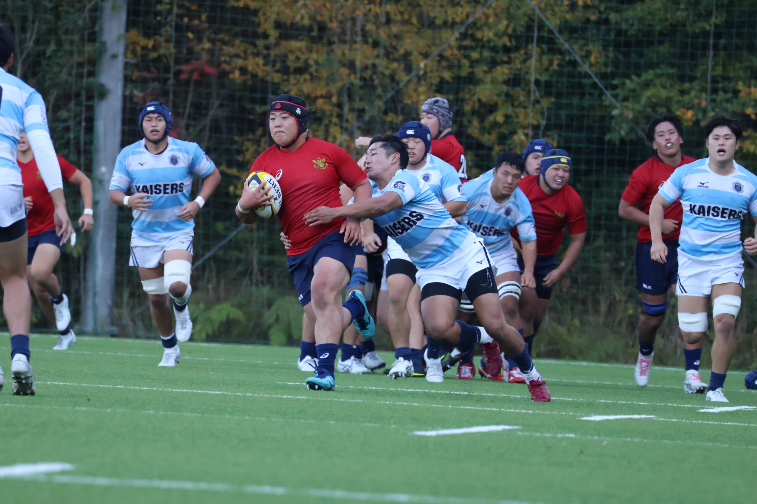 しかし後半5分にすぐに関大にトライを返され、一進一退の攻防が続きます。